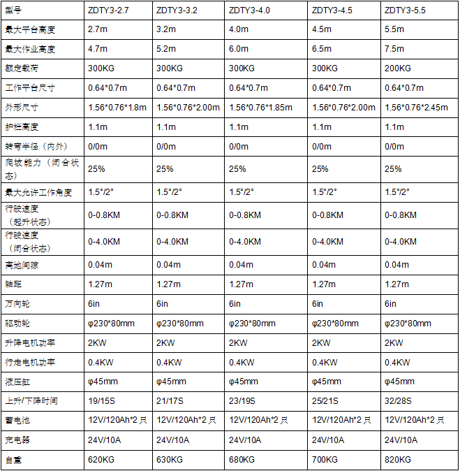 • 平臺高度:可選2.7m、3.2m、4.0m、4.5m、5.5m